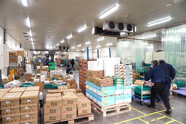 仕入れた食品は即日出荷分を除いて倉庫に保管いたします。安定的な食材の供給を確保。温度管理を徹底した冷凍ゾーン(-50℃、-25℃)・冷蔵ゾーン・常温ゾーンで、安全で新鮮な状態で保たれるよう管理されています。
